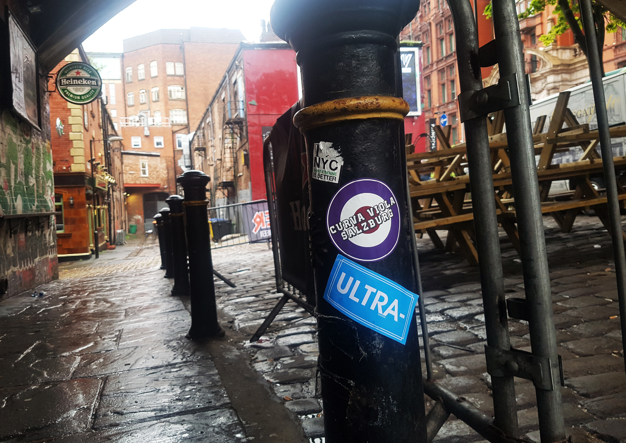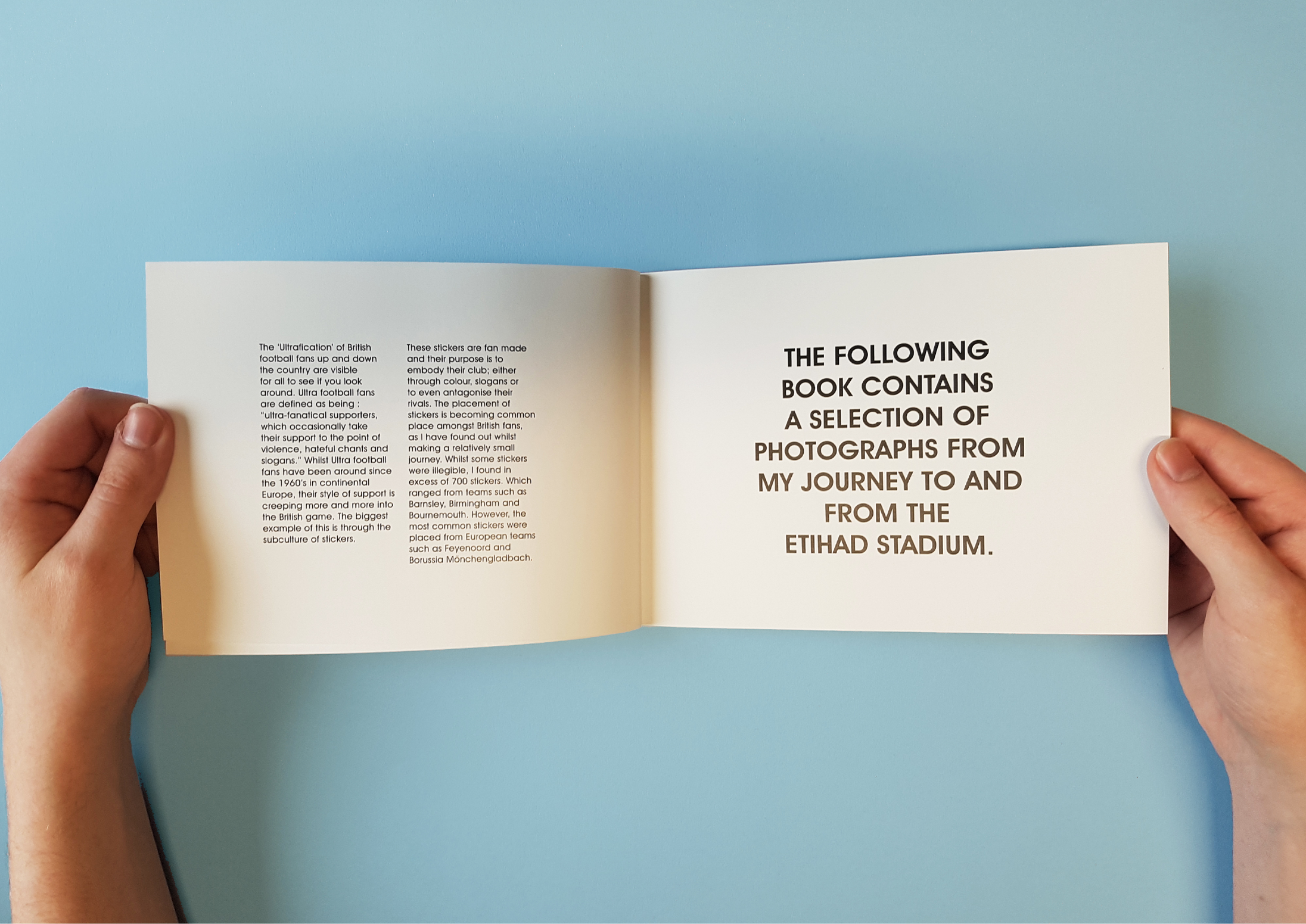 Football stickers have become a prominent part of fan culture, in this self-initiated photographic project I documented a walk from the John Smith’s Stadium to the Etihad Stadium, this hand-produced book captures the proliferation of these stickers, placed by British Ultra fans. Capturing and recording well over 1,000 stickers from 48 different football clubs, this project examines the stickers as markers of time and distance: the wear and tear revealing their age, the placement suggesting the lengths fans go to express their support, and the designs themselves reflecting evolving trends in fan aesthetics. This visual study offers a unique perspective on the material culture of football fandom.